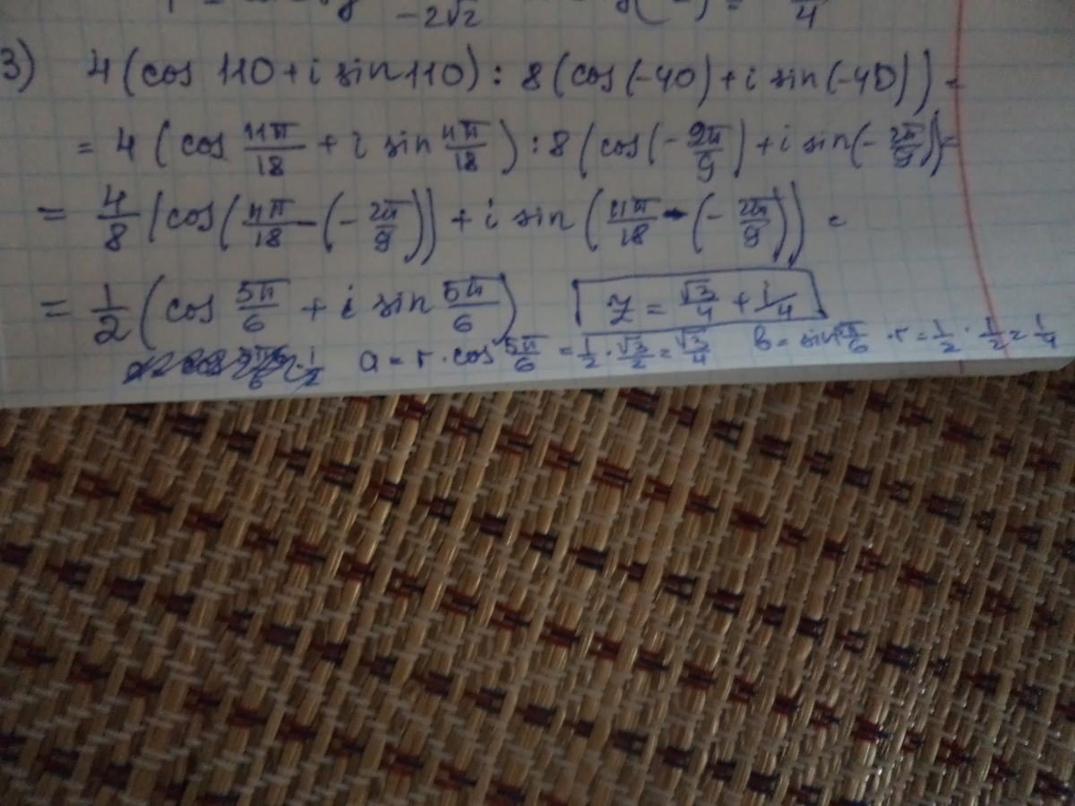 4(cos110° + isin110°) : 8(cos(-40°) + isin(-40°))