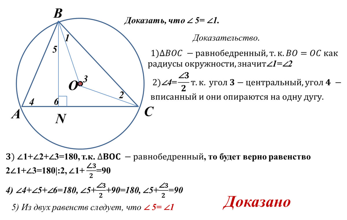 В треугольнике ABC проведена высота BN. Точка O - центр описанной около ABC окружности. Докажите, что угол OBC = углу NBA