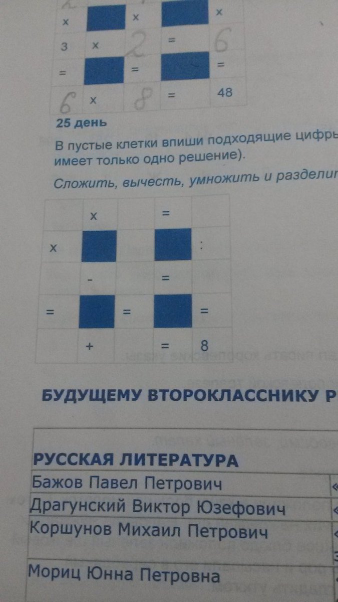 в пустые клетки впиши подходящие цифры так, чтобы все 6 примеров были решены (задание имеет только одно решение )