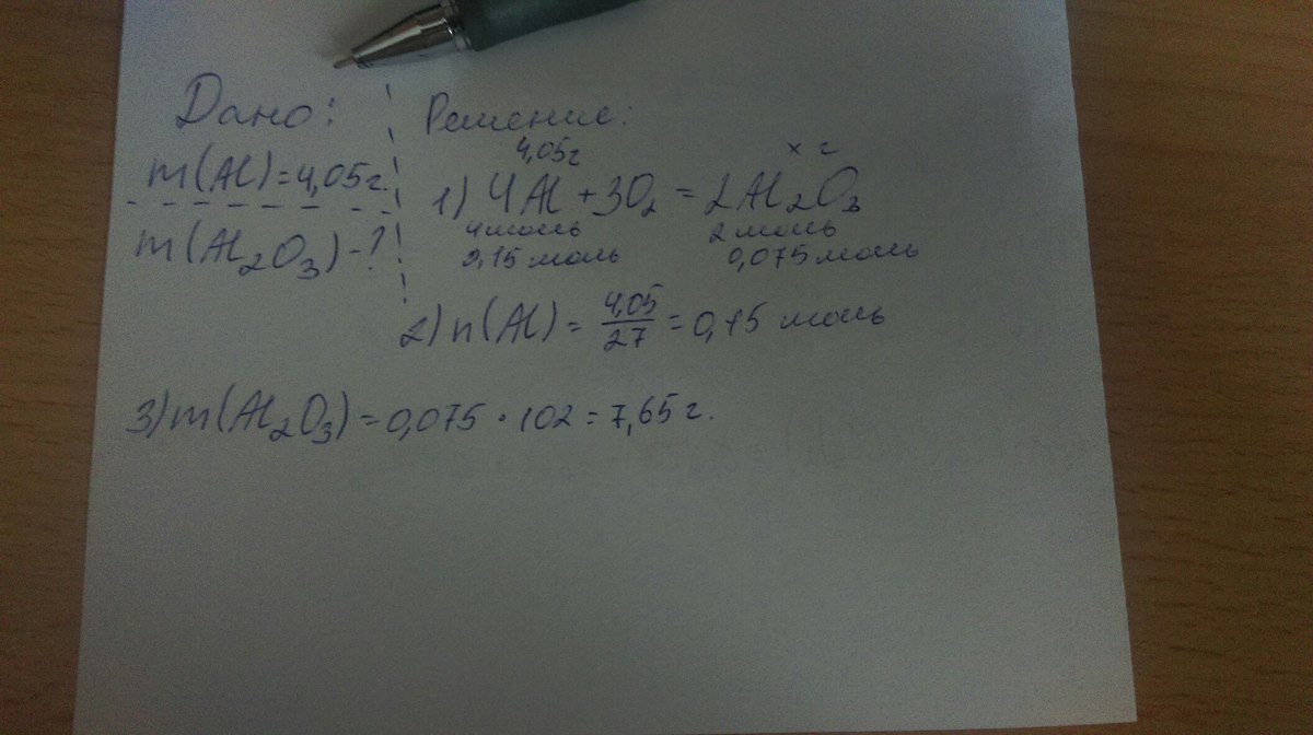 вычислите массу оксида алюминия которая образуется при полном сгорании в струе кислорода чистого алюминия массой 4.05 грамм