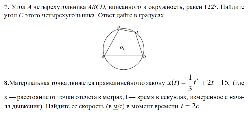 7)\; \; 180^\circ -122^\circ =58^\circ \\\\8)\; V(t)=x'(t)=t^2=2\\\\V(2)=2^2-2=2