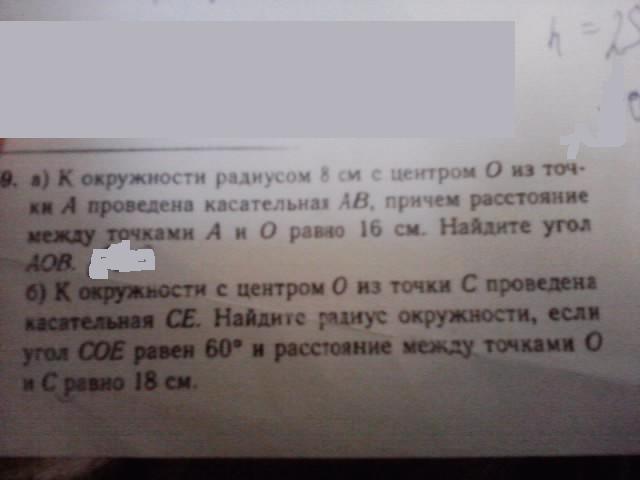 а) В прямоугольном Δ ОАВ катет ОВ = 8, а гипотенуза ОА = 16, ⇒угол А = 30