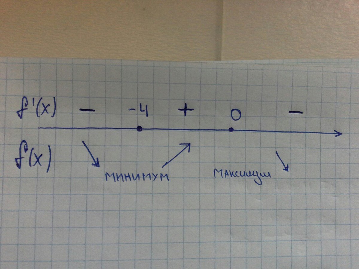 Для того, чтобы определить, где точка минимума, а где точка максимума нужно нарисовать координатную прямую, отметить на ней точки и определить знаки интервалов(как в методе интервалов). (см. рисунок)