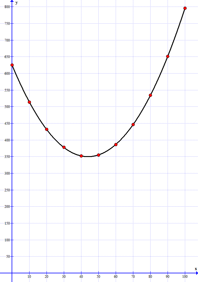 По графику видно, что максимальное значение суммарной площади получается при x=100 (хотя, это видно и без графика, по вычисленным значениям функции).