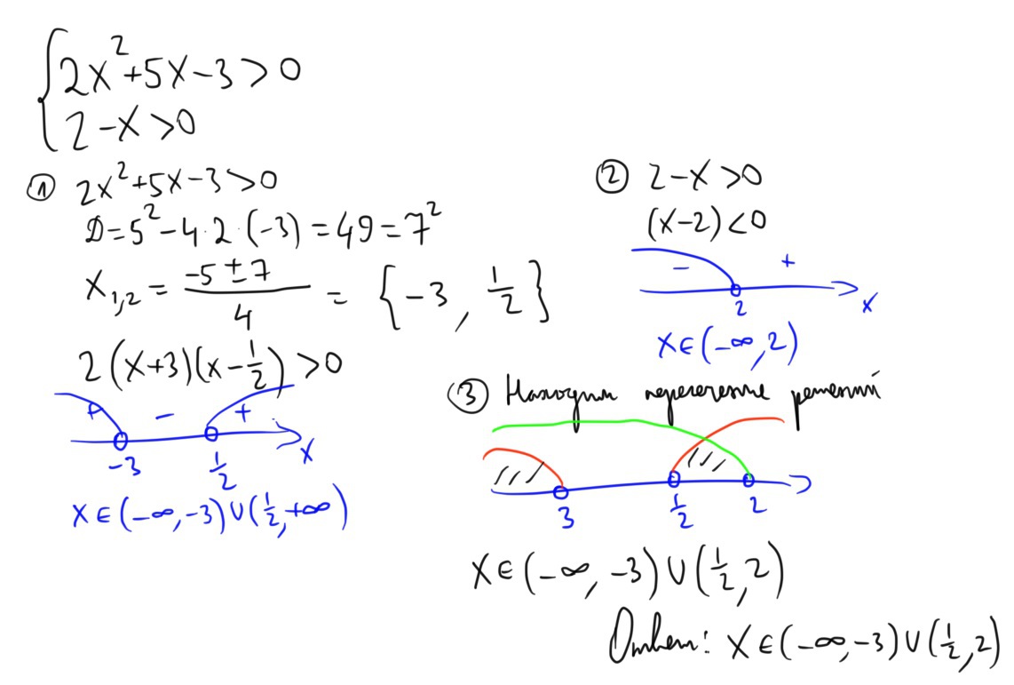 То есть, положительные значения будут при х меньше -3 и х больше 0,5.