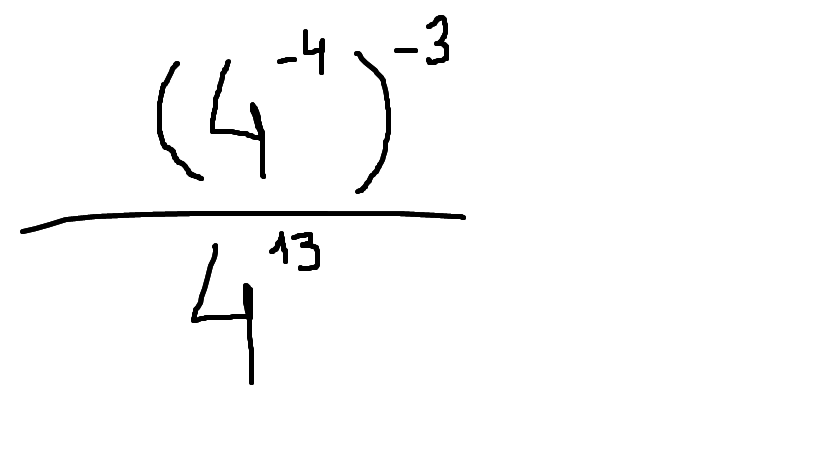 (4⁻⁴)⁻³/4¹³=4^((-4)*(-3))/4^13=4^12/4^13=4^(12-13)=4^(-1)=1/4.