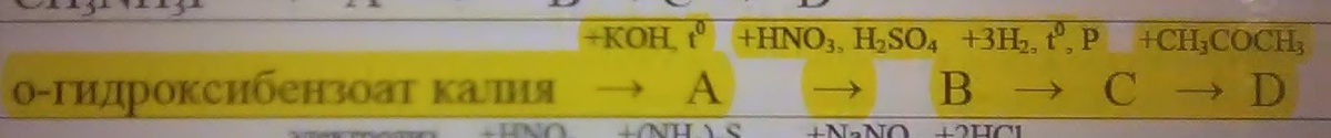 1) C6H4(OH)-COOK + KOH (сплав.) = C6H5-OH (A - фенол) + K2CO3;