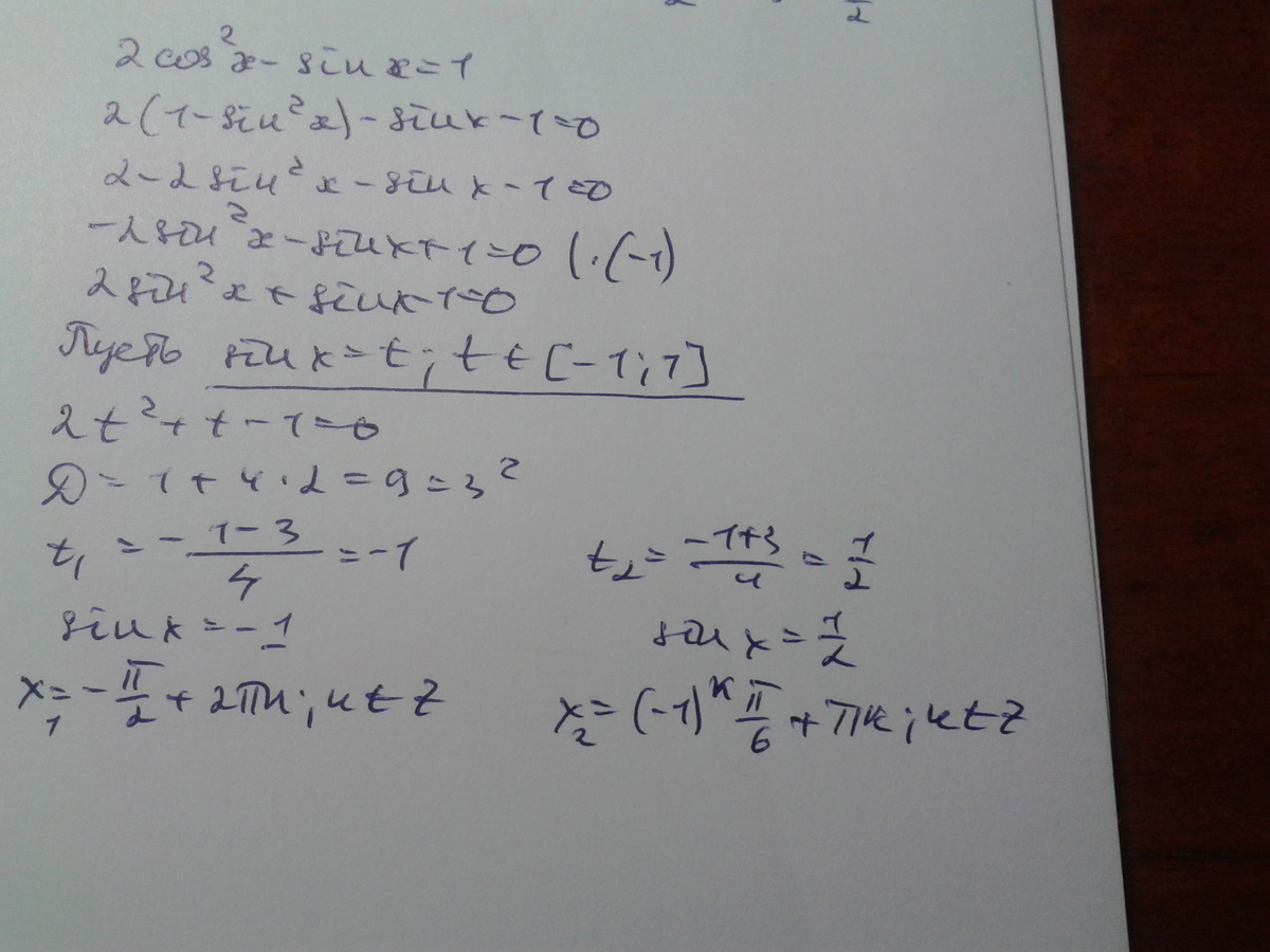 1) sinx=½;x=(-1)ᵏ•(π/6)+πk,k∈Z
