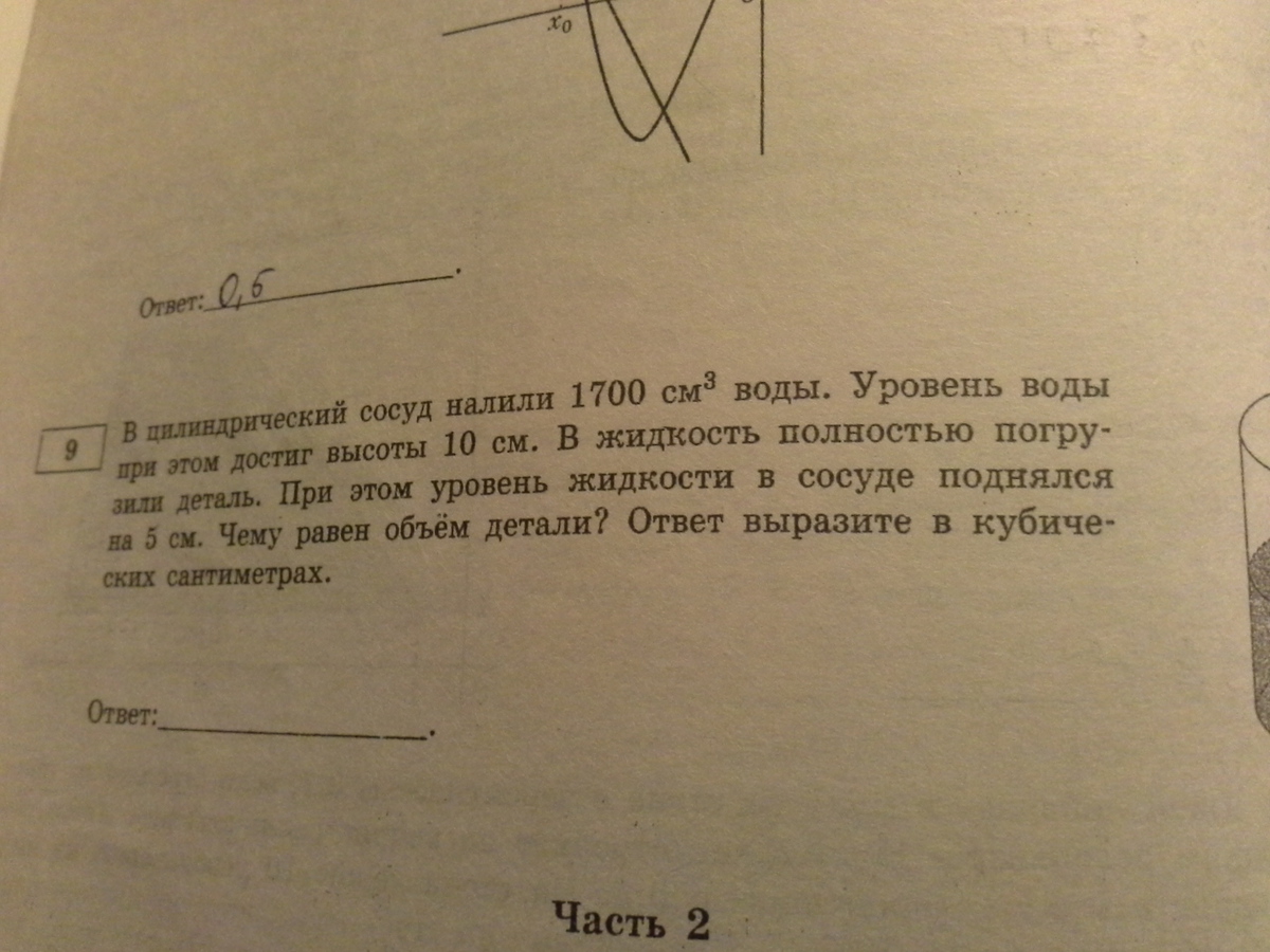 V(жидкости без детали)=S(основания)·Н=S(основания)·10=1700