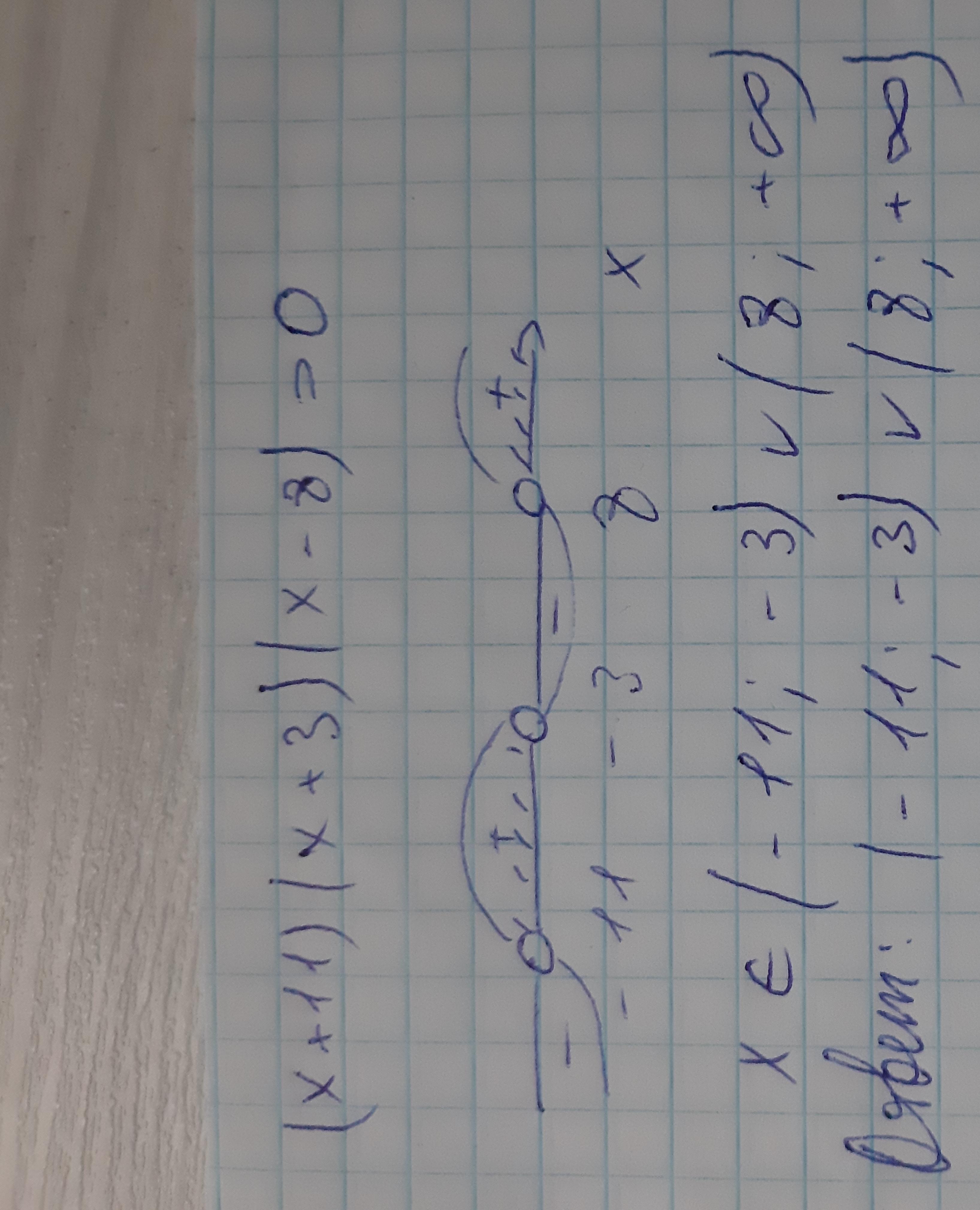 Окончательный ответ: х ∈ ( -11; -3) ∪ ( 8; +∞)