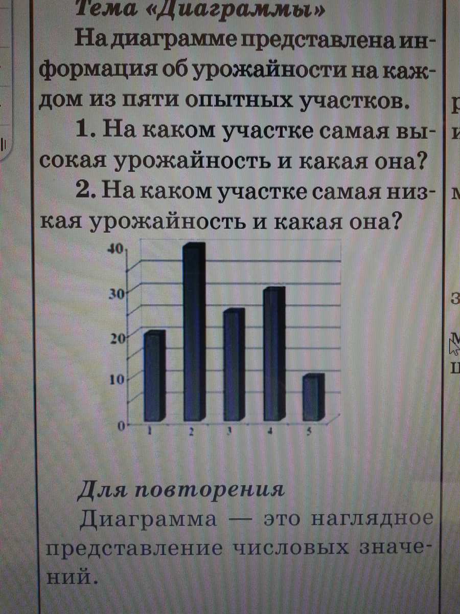 и че тут сложного, на втором участке самый высокий: 40 на пятом самый низкий 10