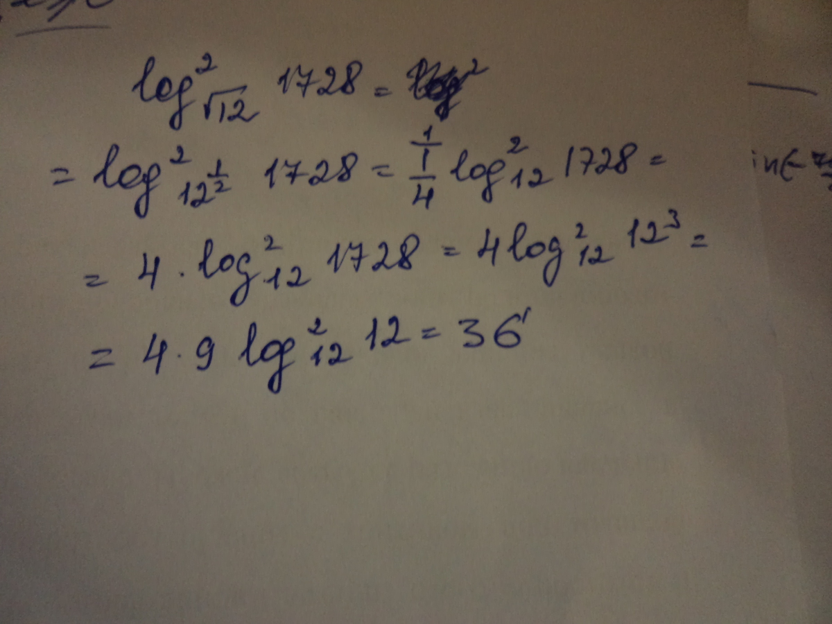 ... = (2*log₁₂(1728))² = (2*3*log₁₂(12))² = 36