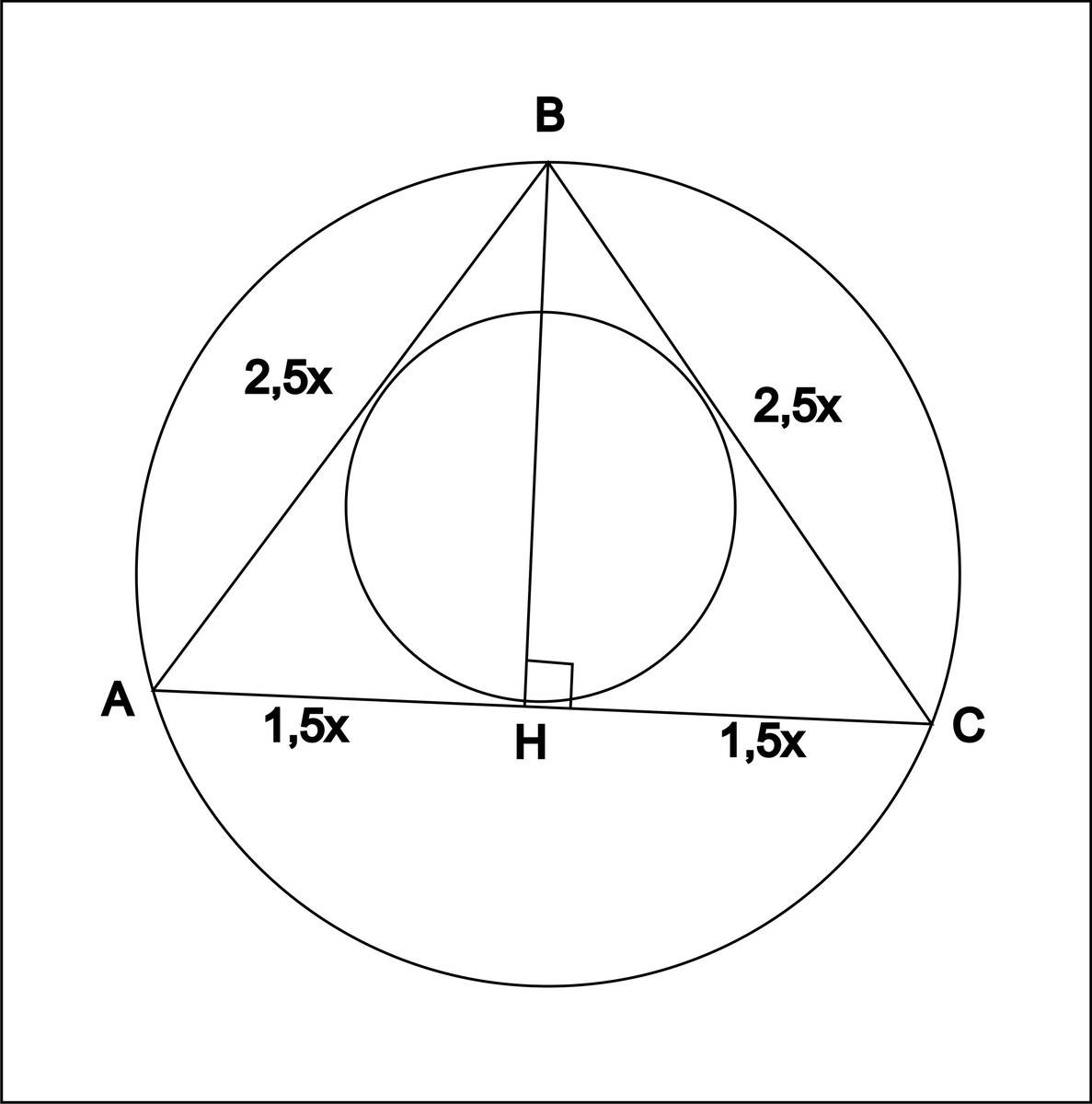 Периметр равнобедренного треугольника относится к его основанию как 8:3 .Найдите отношение радиусов вписанной и описанной окружности.