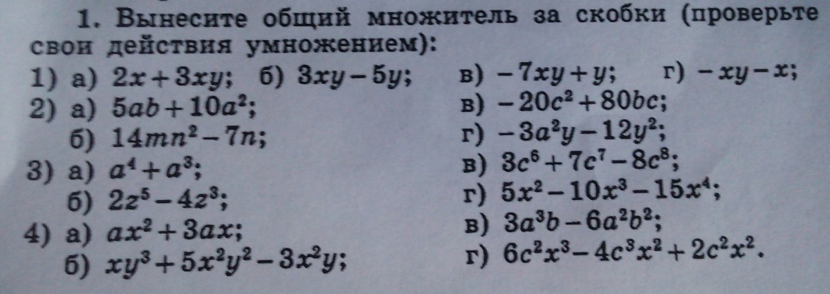 a) x*(2+3y) б) y*(3x-5) в)y*(-7x+1) г)-х*(y+1)