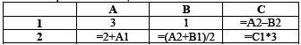 В B2 будет (A2+B1)/2=(5+1)/2=6/2=3