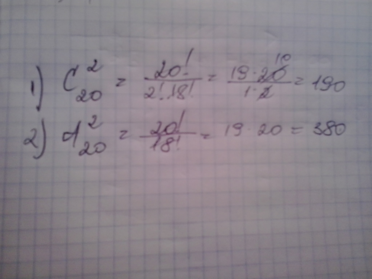 Сколькими способами можно из 20 человек назначить: а) двух дежурных с одинаковыми обязанностями; б) двух дежурных, из которых один старший?