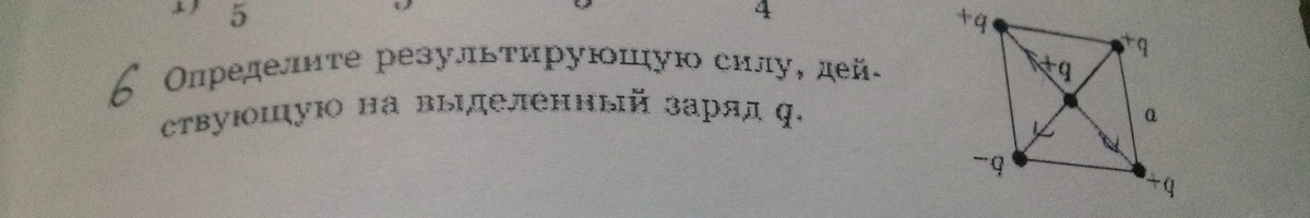 Посмотрите на вложение: действия зарядов, обведенных красным, на заряд, помещенный в центр квадрата, взаимно компенсируют друг друга, и их можно выкинуть из рассмотрения.