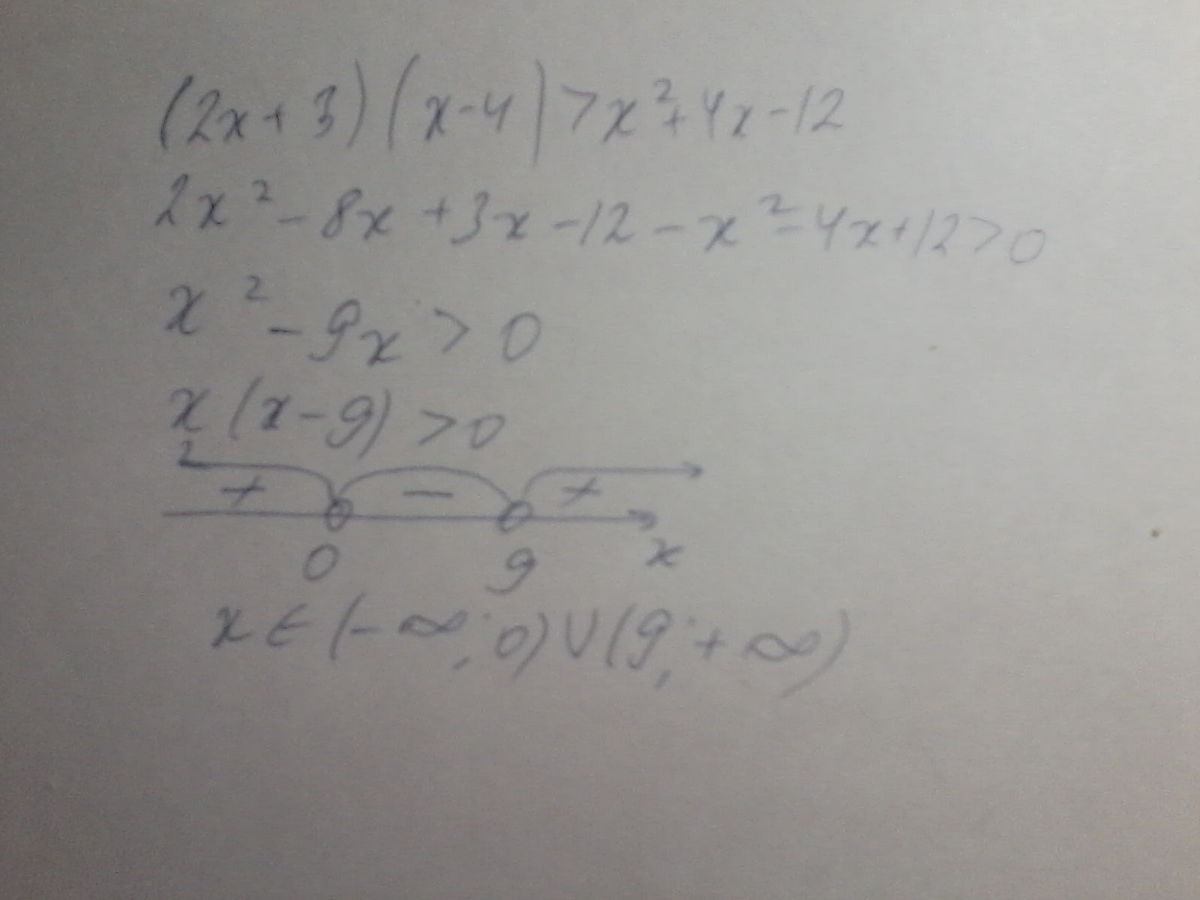 Помогите, пожалуйста мне решить неравенство (2х + 3)(х-4) больше х^2+4х-12. Знайдіть її найбільший цілий розв'язок