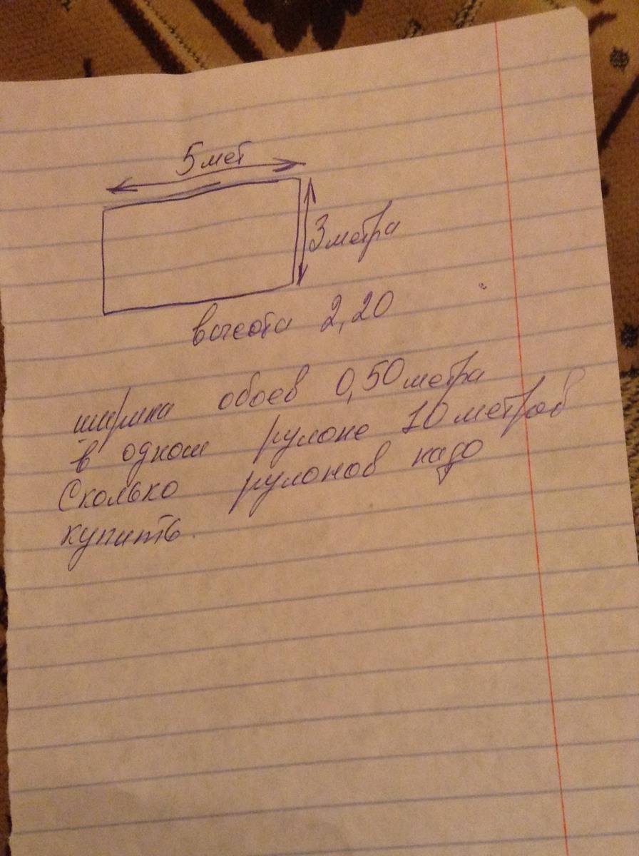 То есть одним рулоном мы покрываем 5*0,5 = 2,5 м стены.