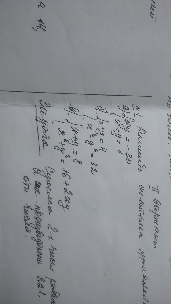 х²+у²=16+2ху⇒ (8-у)²+у²=16+2у(8-у)⇒ у²-8у+12=0⇒ у= 2; 6