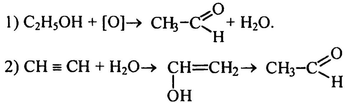 На скрине реакции получения уксусного альдегида из этилового спирта и из ацетилена.