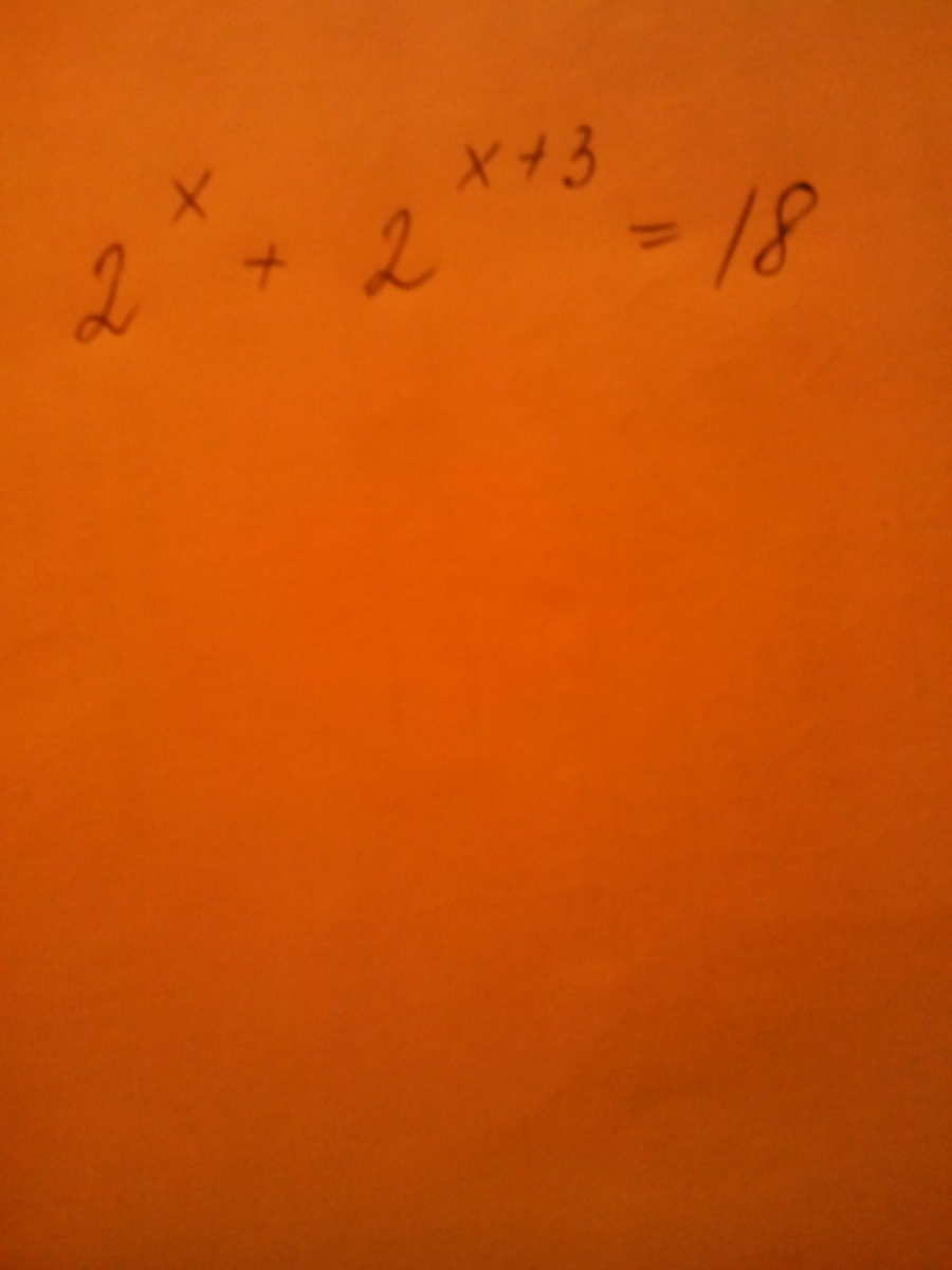 2^x+2^{x+3}=18\\2^x+2^x*2^3=18\\2^x+2^x*8=18 Заменим выражение 2^х переменной t: t+8t=18\\9t=18\\t=18:9\\t=2\\2^x=2\\2^x=2^1\\x=1