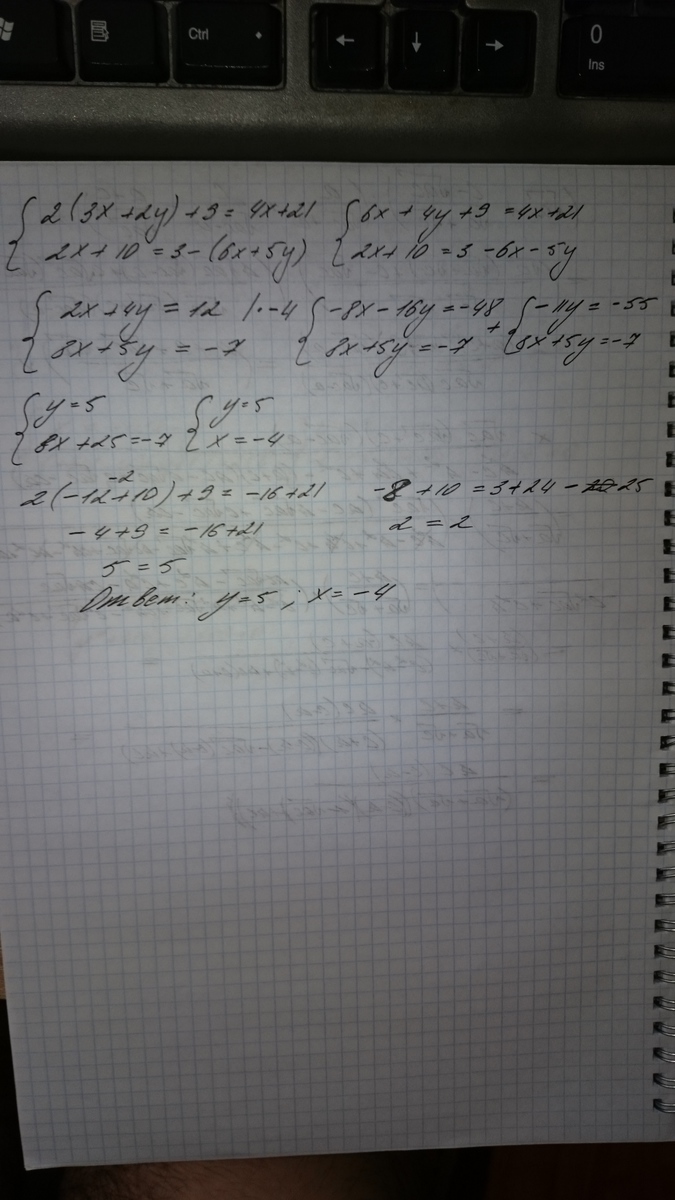 2(3х + 2у) + 9 = 4х +21;