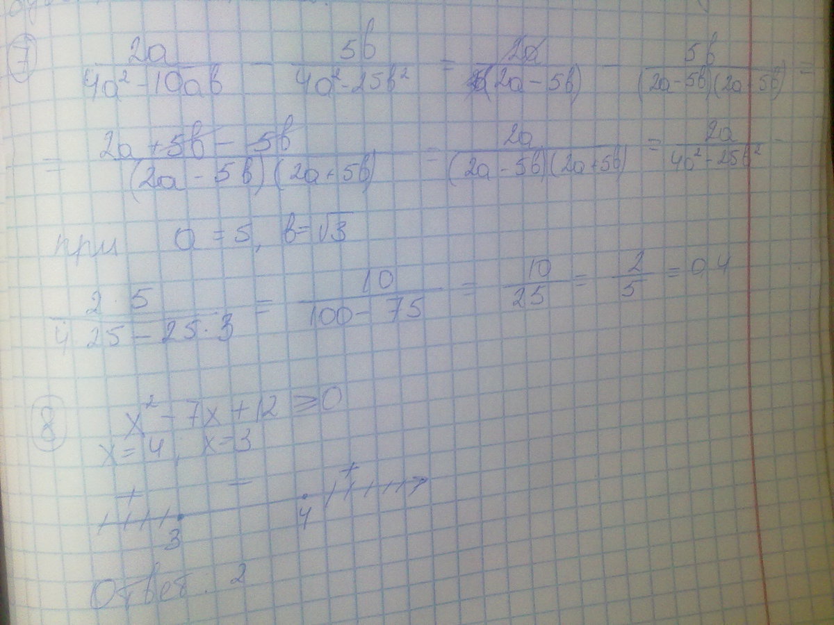 Номер 7 и 8 в приложении. В 7 знаменатели разбиваете на множители, приводите к общему знаменателю, приводите подобные и подставляете значения a и b.