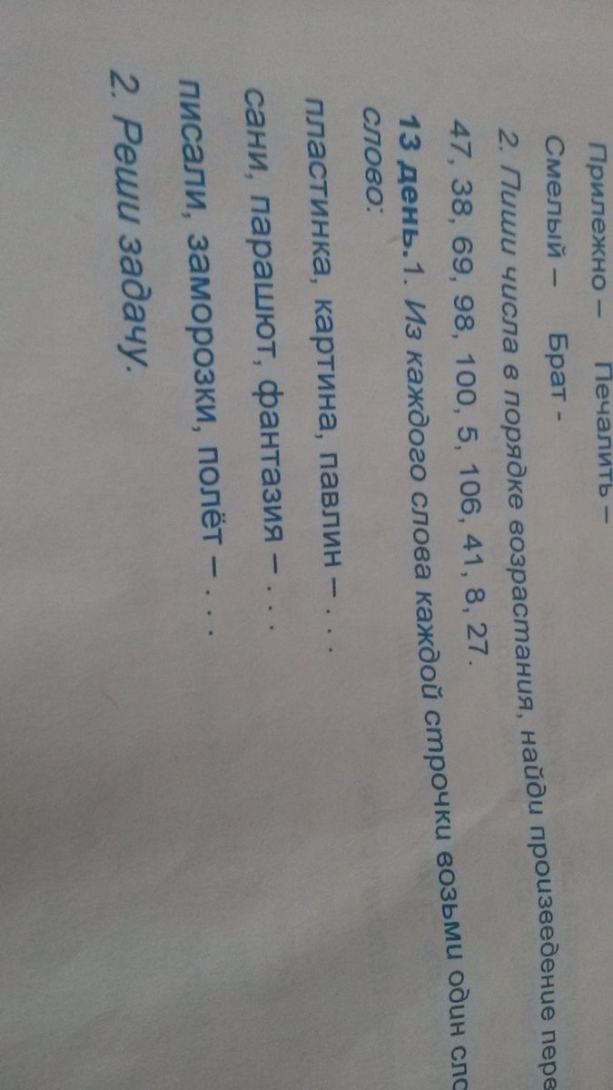Из каждого слова каждой строчки возьми один слог , образуй и запиши найденное слово .