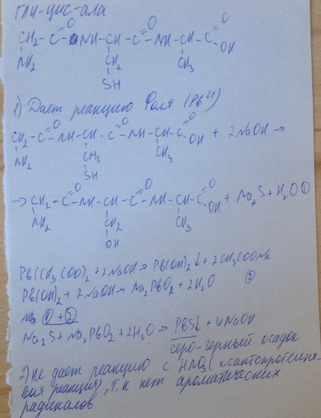 Какой из трипептидов Глу-Цис-Ала или Фен-Лиз-Лей обнаруживается качественной реакцией с: а) Pb 2+ б) HNO3