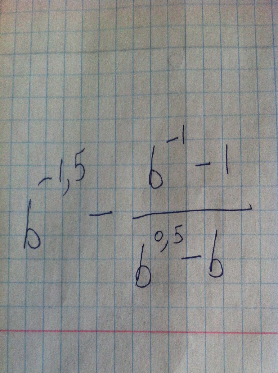 b^{-1.5} - \frac{ b^{-1}-1 }{ b^{0.5}-b } = \frac{ b^{-1}- b^{-0.5} - b^{-1}+1  }{ b^{0.5}-b } = \frac{1- b^{-0.5} }{b( b^{-0.5}-1 )} =- \frac{1}{b}