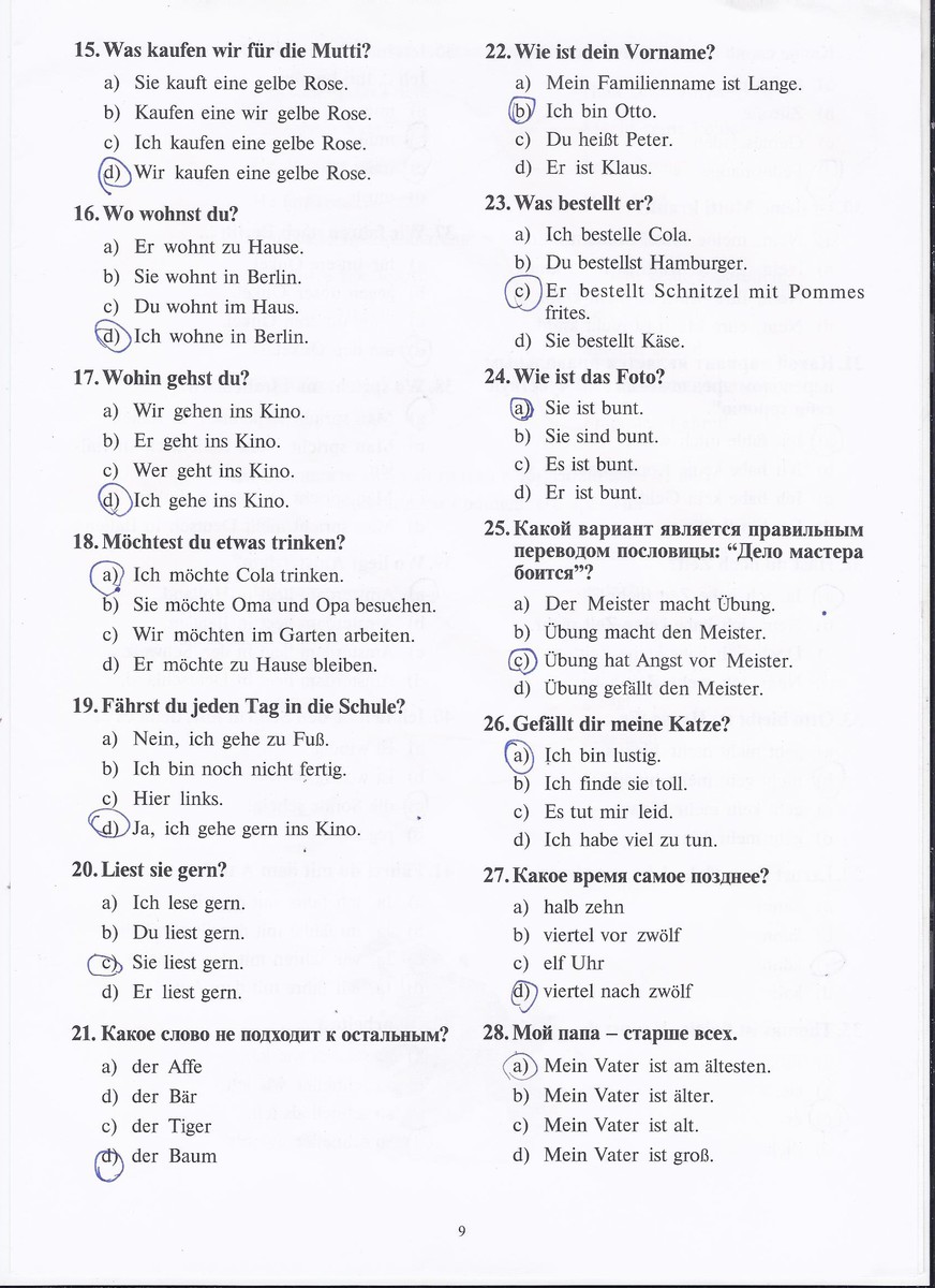 В №19 правильный ответ -- А,поскольку вопрос звучит как:"Ездишь ли ты каждый день в школу" и соответственно ответ:"Нет,я хожу пешком."