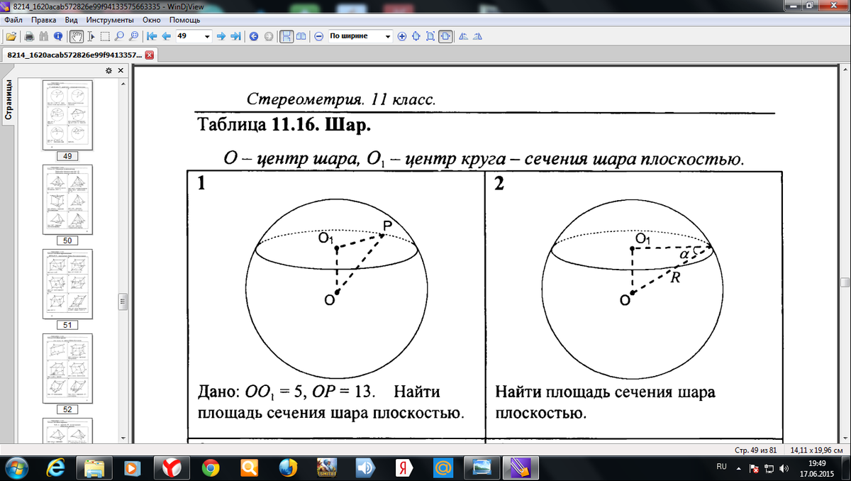 О₁Р- это радиус сечения ( в сечении круг) , тогда S=πR²