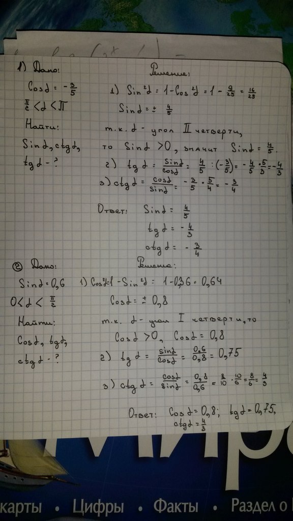 1. Зная косинус, найдем синус через основное тригонометрическое тождество: