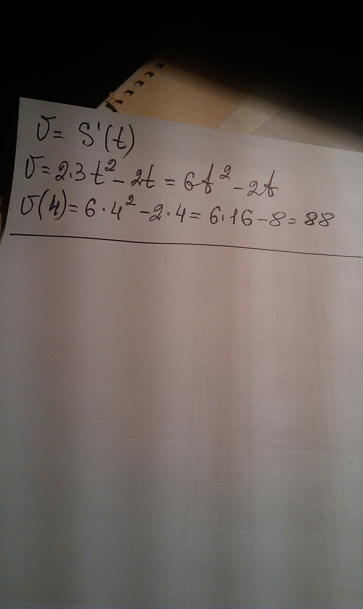 точка движется прямолинейно закону S=2t^3-t^2-2.Найдите скорость точки в момент времени t=4.