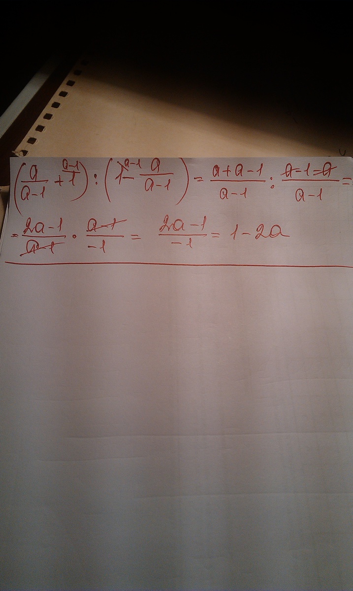 алг., дроби ( a/a-1 плюс 1 ) : (1 минус a/a-1 )