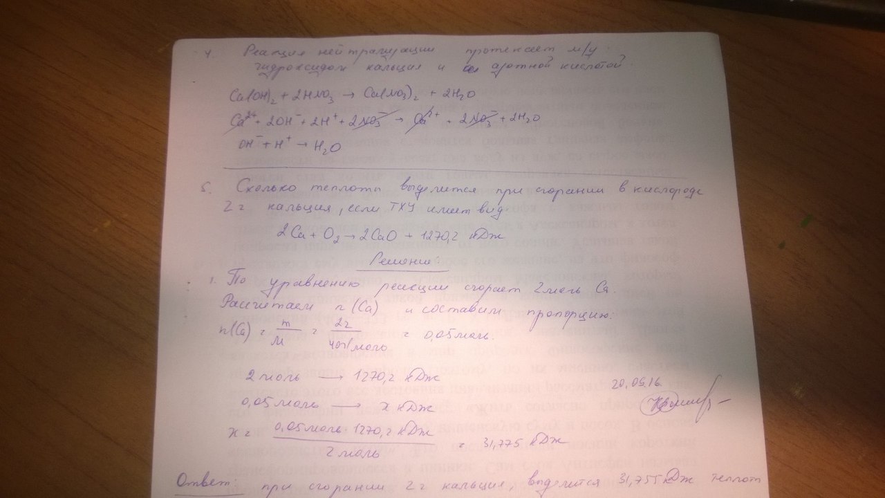 5)Сколько теплоты выделится при сгорании в кислороде 2 г кальция, если термохимическое уравнение реакции имеет вид