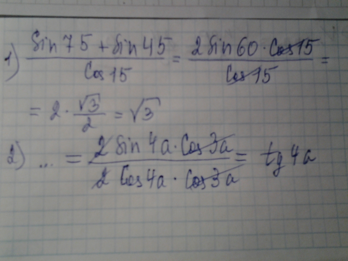 Использованы формулы преобразования суммы синусов и суммы косинусов в произведения