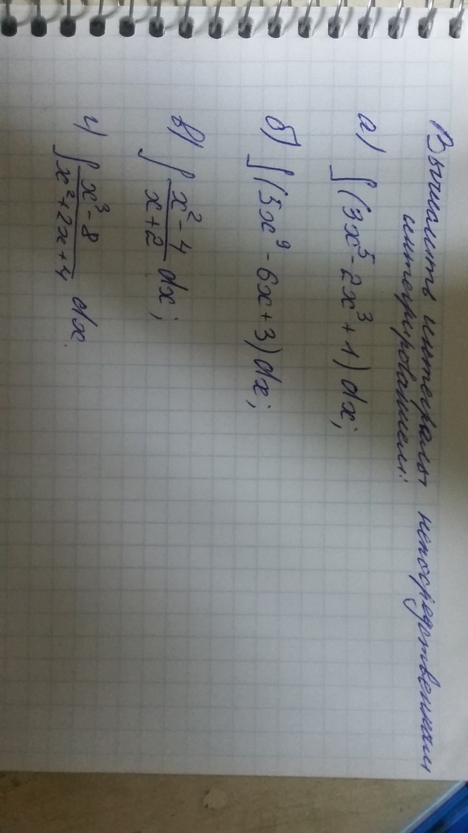 а) интеграл(3x^5 - 2x³ +1)dx = интеграл(3x^5dx) - интеграл(2x³dx) +интеграл(dx)=