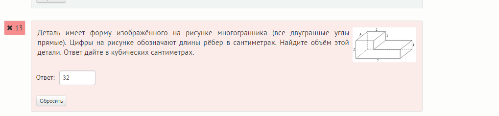 V=30-9=21 - объём многогранника, который изображён на рисунке.