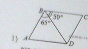 Сумма углов параллелограмма равна 360, сумма двух меньших углов равна 360 - 2(65+50)=130. Следовательно искомый меньший угол равен 130/2=65 градусов.