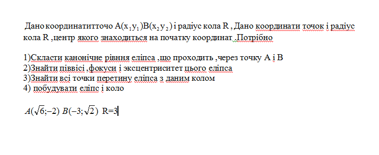 1)Скласти канонічне рівння еліпса ,що проходить ,через точку A i B