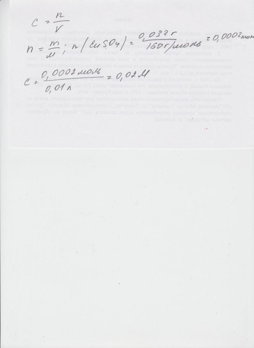 Рассчитать молярную концентрацию раствора, если в 10 мл раствора содержится 0,032 г сульфата меди (II).