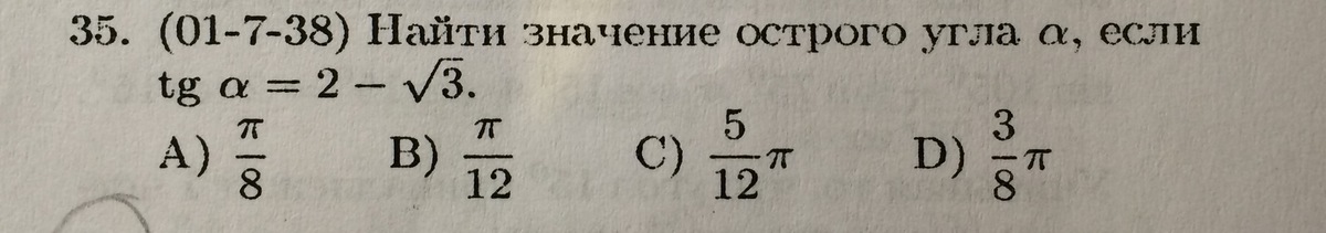 √(2-√3)(2-√3)/(2+√3)(2-√3) =2 -√3 . B) π/12 .