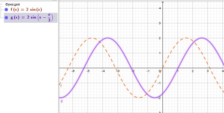 строим сначала график функции y=2sinx и затем параллельно смещаем этот график вправо на п/3