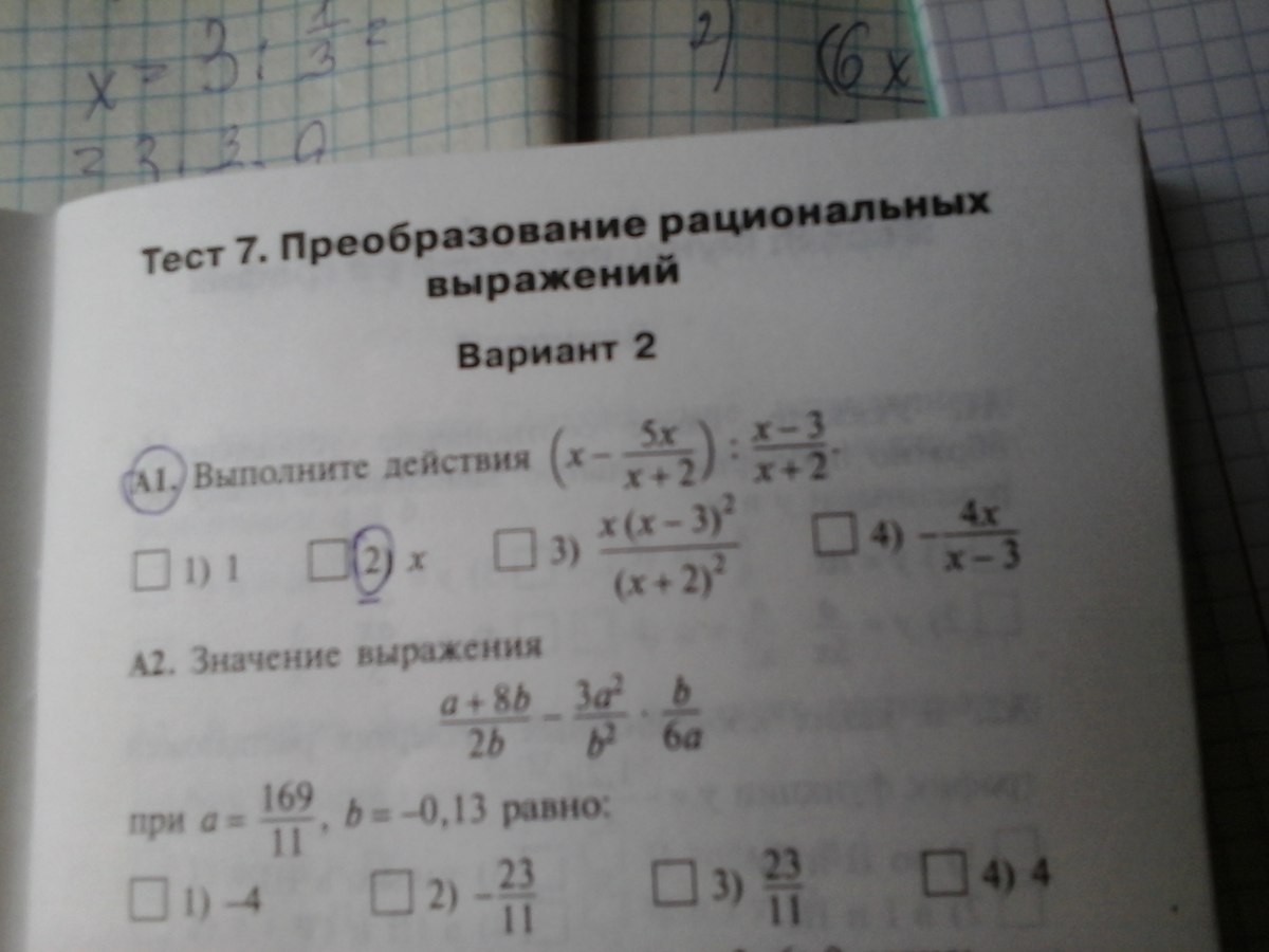 A1. (x - 5x/(x+2)) : (x-3)/(x+2) =(x² +2x -5x)/(x+2)*(x+2)/(x-3) =(x² -3x)/(x-3) =x(x-3)/(x-3) =x .