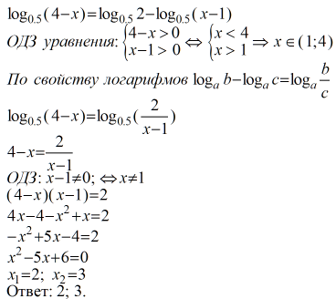 log(0,5)(4-x)+log(0,5)(x-1)=log(0,5)2