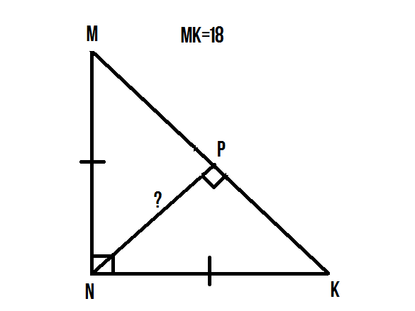 MNK - прямоугольный и равнобедренный, значит NP - высота и медиана