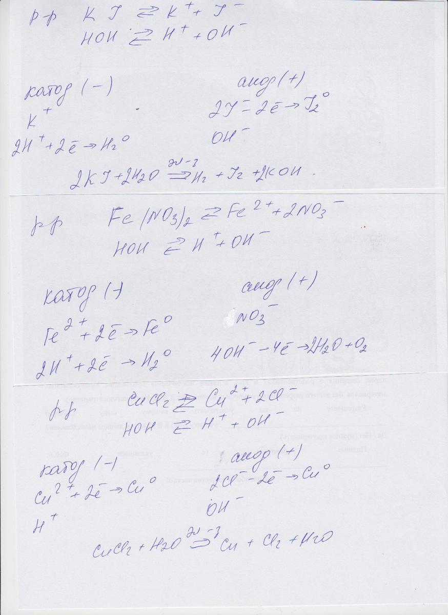 напишите уравнение электролиза водного раствора