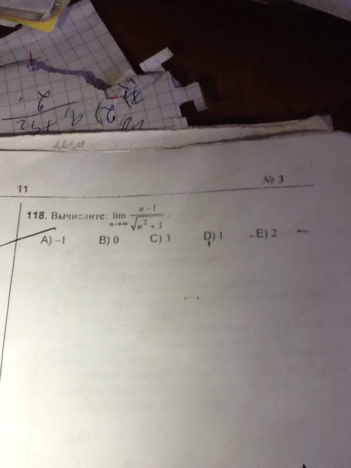 Разделим числитель и знаменатель на n, тогда: =lim(1-1/n)/кореньиз (1+3/n^2)=1/1=1.